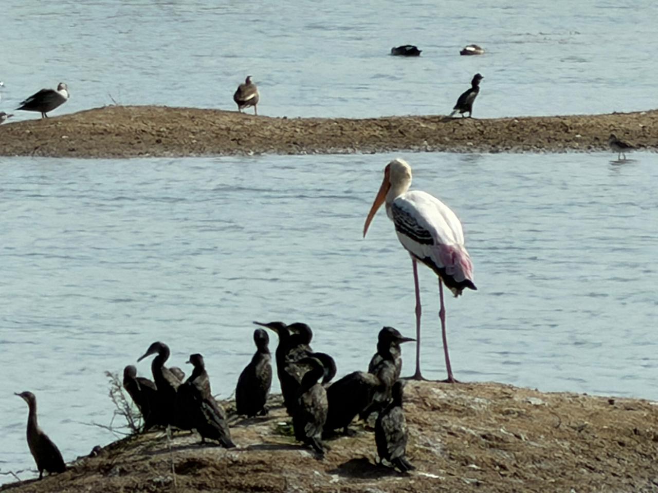 Looking across the river, I could see patches of trees rising from shallow waters and a lone white bird standing gracefully near the edge. The scene was almost painterly.