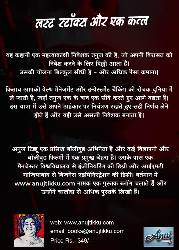 यह कहानी एक मेहनती निवेशक, तनुज की है, जो अपनी विरासत का निवेश करने दिल्ली आता है। उसकी योजना सरल है: ज़्यादा पैसा कमाना। यह किताब आपको धन प्रबंधन और निवेश बैंकिंग की आकर्षक दुनिया में ले जाती है, जहाँ तनुज एक के बाद एक सौदे करते हुए अपने अहंकार को काबू में रखते हुए अपनी राह पर आगे बढ़ता है।